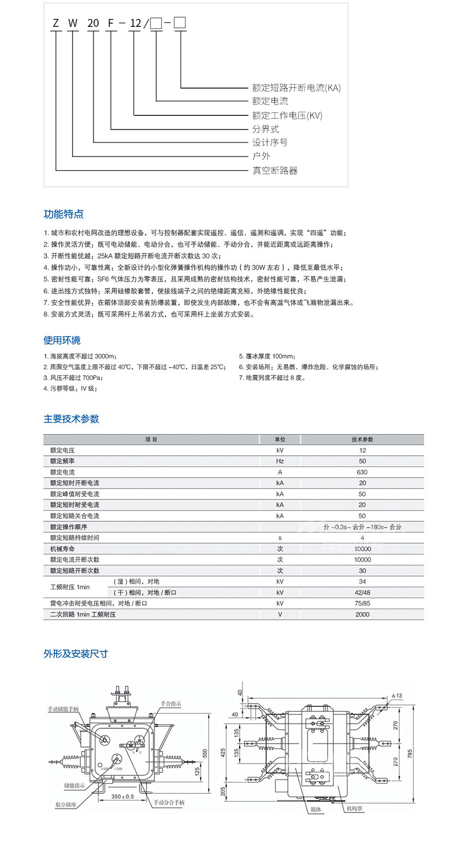 ZW20-12真空斷路器(手動)