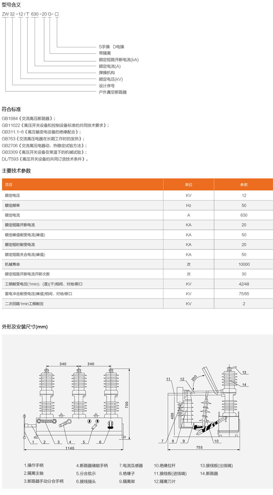 ZW32-12型盧外真空斷路器(以下簡稱斷跑器)為額定電壓12kV,三相交流50Hz的戶外配電設(shè)備。主要用于開斷,關(guān)合電力系統(tǒng)中的負荷電流、過載電流及短路電流。適用于變電站及工礦企業(yè)配電系統(tǒng)中作保護和控制之用,及農(nóng)村電網(wǎng)頻繁操作的場所。本斷路器具有體積小、重量輕、防疑露、免維護等特點,能適立較惡劣的氣候條件和污穢環(huán)境。