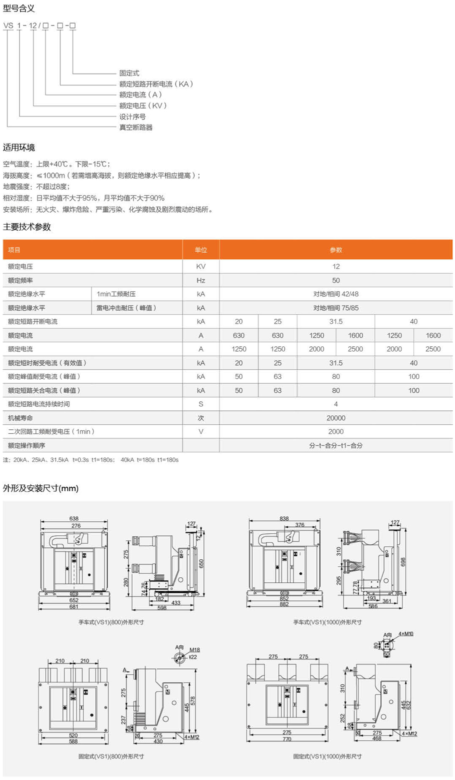 VS1-12型戶內(nèi)高壓真空斷路器,系三相交流50Hz額定電壓為12KV電力系統(tǒng)的戶內(nèi)開關(guān)設(shè)備,作為電網(wǎng)設(shè)備、工礦企業(yè)動力設(shè)備的保護和控制單元。適用于要求在額定工作電流下的頻繁操作,或多交開斷短路電流的場所。