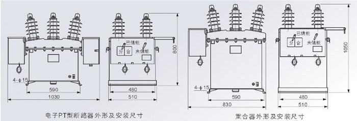 4)若加裝電壓互感器、自動重合控制器、自動分段控制器,可實現(xiàn)配電保護(hù)自動化和“四遙” (遙測、遙信、遙控、遙調(diào))功能加裝了復(fù)合控制器(消除合閘涌流)