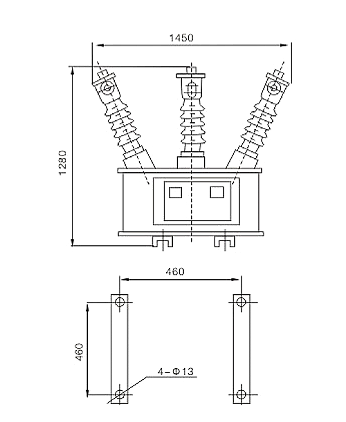 2、組合互感器由兩只單相電壓互感器連體成為(PT)及兩只電流互感器(CT)組成,PT、CT均為電磁式,兩只PT繞組采用V/V聯(lián)結(jié)成三相測(cè)量裝置,兩只CT的一次繞組分別與電網(wǎng)A、C相串連。箱體側(cè)面焊有接地螺絲。