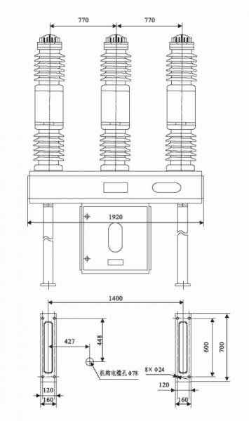 斷路器采用三相瓷瓶支柱式結(jié)構(gòu),為戶外設(shè)計(jì),三相配用一個彈簧操動機(jī)構(gòu),居中布置。